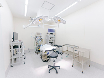 手術室できるかぎり安全な手術をおこなうため、麻酔モニター(心電図、血圧、血中酸素飽和度、体温、呼気中二酸化炭素濃度など)、保温装置などを使用します。