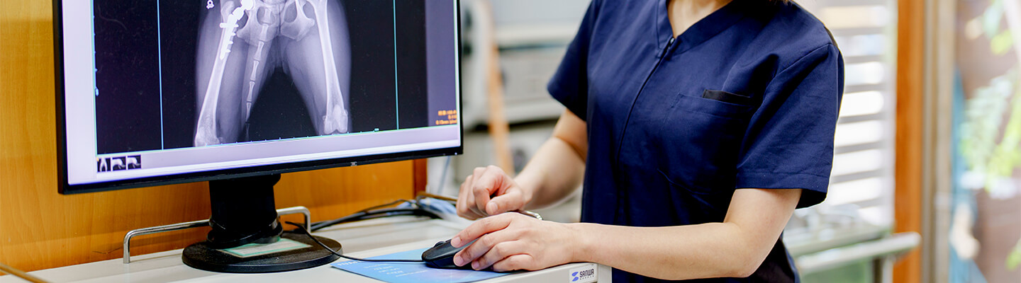 主に 股関節形成不全、前十字靭帯断裂、膝蓋骨脱臼、肘関節形成不全、骨折 などの病気を診断し、治療のための手術を行っています。